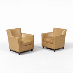 Pair of Vintage Modern Tan Leather Club Lounge Chairs, c.1980's - Delivery Available $550Hazard, CA