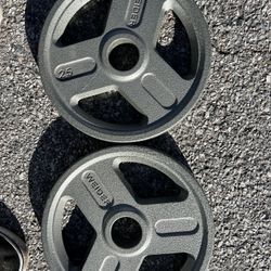 Olympic Equipment: Silver Curl Bar With Cooper Bearings & Weight Plates Pairs Of 35s, 25s And 10 Pounds (Total: 160 lbs)$236Los Angeles, CA