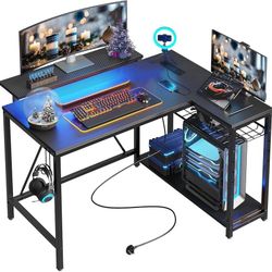 Bestier Gaming Desk with Power Outlets, 42" L-Shaped Computer Desk with LED Lights, Desk with Reversible Storage Shelves & Hooks for Small Spaces, Bed$70Fullerton, CA