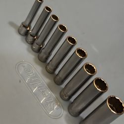 Snap-on Tools 9 pc 3/8" Drive 12-Point SAE Deep Flank Drive® Socket Set (3/8"-7/8" except 11/32") (1/4" and 5/16" missing)$240Norwalk, CA