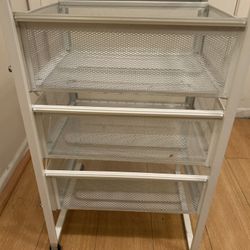 White Metal Small Storage Unit With Wheels On The Back. & 3 Drawers.$20West Los Angeles, CA