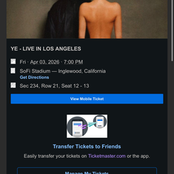 Kanye West tickets Los Angeles Sec 230$900Inglewood, CA