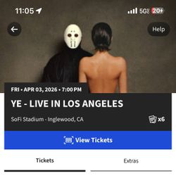 Kanye SOFI April 3 540 row 7 middle stage view seats$275Artesia, CA