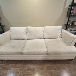 Off-White Linen 3-Seater Sofa with Nailhead Trim – Comfortable Living Room Couch$300Los Angeles, CA