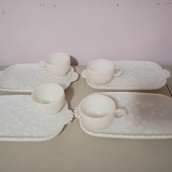 Vintage Hazel Atlas Dogwood Milk Glass Snack Sets $15Bell Gardens, CA