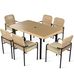 New Assembled 7 Pieces Patio Dining Set, Outdoor Wicker Furniture Set, Plastic-Wood Table Top$495La Mirada, CA