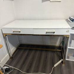 Modern White Desk with Drawers Gold Accent Legs$100Long Beach, CA