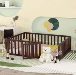NEW Walnut Full Size Montessori Bed with Fence and Door, Toddler Floor Bed Frame$130Arcadia, CA