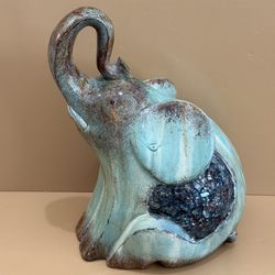 Vintage Teal Blue 9”Hand Painted Carved Wood Elephant Statue w/Glass Mosaic Inlay$75Calabasas, CA