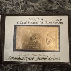 Lou Gehrig Official Presentation Game 23-Karat Pure Gold Commemorative Stamp$20Irwindale, CA