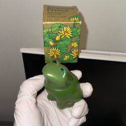 Classic 1970s collectible Avon fragrance in original green figural bottle. Includes original box. Good vintage condition. Please see photos for exact $5Los Angeles, CA