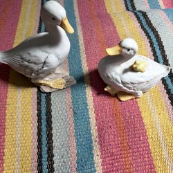 Vintage Porcelain Duck Figurine Pair Mexico Realistic White Ducks w Ducklings$25City Of Industry, CA