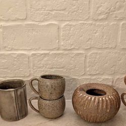 Vintage Studio Pottery Mugs + Donut Vase – MCM Earthy Set$70Santa Monica, CA