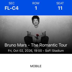 Bruno Mars 10/02 Two Floor Tickets $1,400Alhambra, CA
