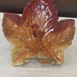 Fitz and Floyd ceramic maple leaf shaped snack plate with berries. 8”x 7.75”$20Anaheim, CA
