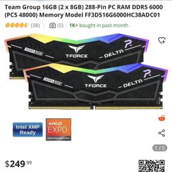 Team Group 16GB (2x8GB) DDR5 6000$225Los Angeles, CA
