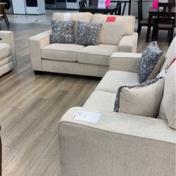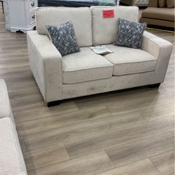 Beige Fabric Plushy Cushion With Square Arm Loveseat $400Phillips Ranch, CA