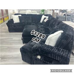 Black Onyx Plush Corduroy 2pc Sectional with Chaise 120x65 includes six accent pillow pick up can deliver $1,199Phillips Ranch, CA