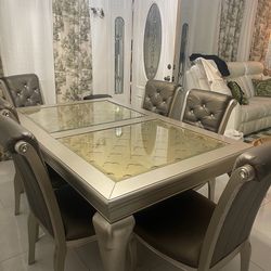 Large Gray Gold Dining Table Set for 6$599Los Angeles, CA