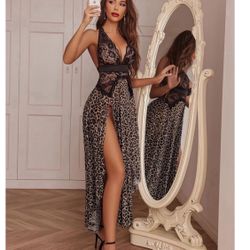 Avidlove Women Lingerie Deep V Neck Nightwear One Piece Sexy Nightgowns Mosaic Lace Mesh Dress Leopard$20Whittier, CA