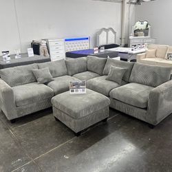 4-Pc Gray Corduroy Sectional Sofa With Ottoman Brand New ‼️$499Westchester, CA