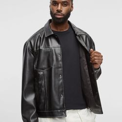 Mode of One Men's Faux-Leather Trucker Jacket Deep Black Large$30Palmdale, CA