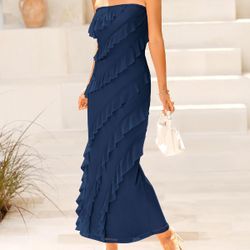 Women's Sexy V Neck Ruffle Split Evening Party Prom Dress Elegant Sleeveless Slim Fit Maxi Dress$25Whittier, CA