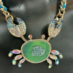 Betsey Johnson Sparkling Aqua, Blue, Pink Weaved Chain Crab Statement Necklace$150Lake View Terrace, CA