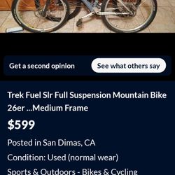 Trek Fuel Slr Medium Full Suspension Mountainbike $499San Dimas, CA