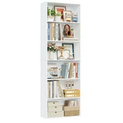 6 Tier Tall Bookshelf and Bookcase, Wooden Bookcase Display Shelf, White.$69Downey, CA