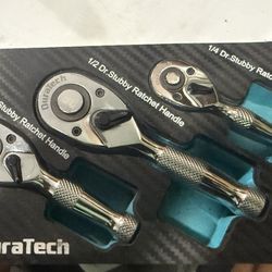 DURATECH 3PCS Stubby Ratchet Wrench Set, 90-Tooth 1/4" 3/8" 1/2" Drive Socket Wrench, Mini $35Irwindale, CA