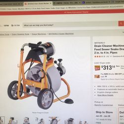 SKYSHALO Drain Cleaner Machine 100ft.x3/8in. Auto Feed Sewer Snake Drain Auger on Wheelsfor 2in.to4in. Pipes $205Rancho Cucamonga, CA