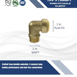 Push Fit 1 Inch x 1 Inch Male NPT Elbow, 1 in Inch Push Fit Male Elbow$20Fontana, CA
