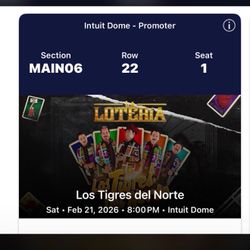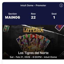 "Vendo 2 boletos para Los Tigres del Norte - Feb 21, Intuit Dome. Sección MAIN06 fila 22 asientos juntos. Interesados mándenme mensaje."$150Bellflower, CA