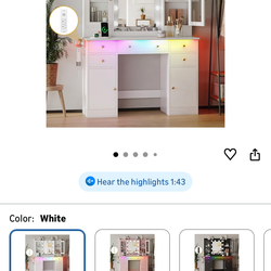 Makeup Vanity Desk with Mirror and Lights, White Vanity Table Set with Storage Drawers, Charging Station & Cabinets, Large Dressing Table with RGB Amb$170Fullerton, CA