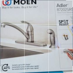 New MOEN Adler Single-Handle Low Arc Standard Kitchen Faucet with Side Sprayer in Spot Resist Stainless. Retails $109 With Taxes!I Have Others Avail. $40Fontana, CA