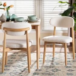 ✨️ Baxton Studio Wattsu White Boucle and Natural Brown Wood Dining Chair (Set of 2 w7639$120Los Angeles, CA