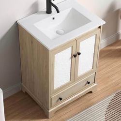 Assembled New 24-Inch Bathroom Vanity with Sink, Overflow Protection, Easy-to-Clean Ceramic Surface, Solid Wood$175Santa Fe Springs, CA