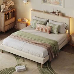 Walnut Metal Frame Full Platform Bed with Wood Storage Headboard Charge Station and Foldable Bedside Shelf and LED$100Anaheim, CA