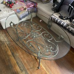 Ethan Allen ? Oval Glass & Steel Coffee Table $150Montrose, CA