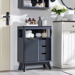 Fluted Bathroom Floor Cabinet with Sliding Door, Modern 3 Drawers Storage Organizer w/Adjustable Shelf and Faux Marble Top, Small Curved Profile Wood $70Ontario, CA