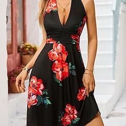 HUHOT Women's Summer Sundress Sleeveless Halter Neck Spring Floral with Pocket Elastic Waist Ruffle Mini Dresses$25Whittier, CA
