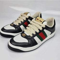 NEW GUCCI MEN CURRENT "SCREENER" BLACK & WHITE WEBBING SNEAKER SHOES$650Corona, CA