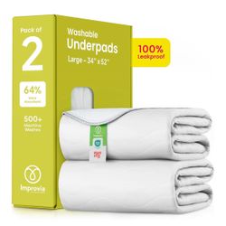 IMPROVIA® Incontinence Bed Pads Washable Waterproof mattress protector - 2 Pack - 34" x 52" Reusable hospital bed, crib Underpads Bedwetting Pee Pads $18Montebello, CA