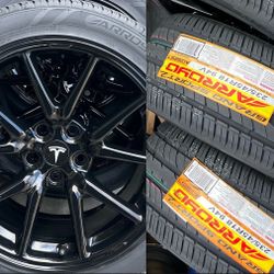 2023 Tesla Model 3 Gloss Black Aero Wheels Rims Tires 18” Factory OEM$850Gardena, CA