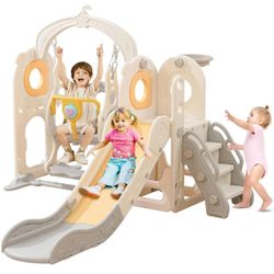 Toddler Slide with Swing Set, 6-in-1 Indoor Playset for Ages 1-3, L Shaped Slide with Basketball, Ba$80Rancho Cucamonga, CA