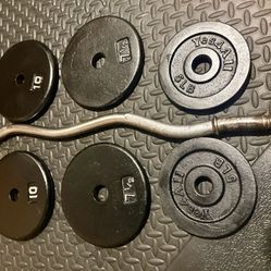 Standard Curl Bar with Weight Plates: 25s, 10s, 7.5s and 5 pounders. Brute Weigh: 109#$139Los Angeles, CA