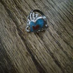 Sterling Vintage Torquise Coral Mosaic Silver Ring $30El Monte, CA