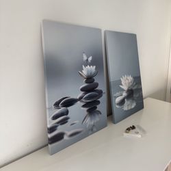 Zen Stones Spa Wall Art White Lotus Floral Bloom on Stone in Water $29Los Angeles, CA