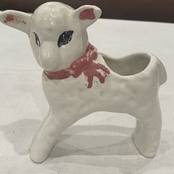 Vintage ceramic lamb planter with painted facial features and a red bow.$15Anaheim, CA